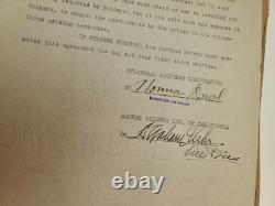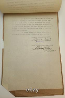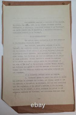 This contract includes the 3 pages shown in the photos above. This contract has horizontal fold lines from how it was stored. If requested I will provide the document's measurements. Please view all of the pictures above carefully.
