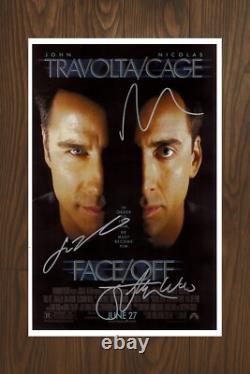 Elevate your collection with this rare and authentic piece of cinematic history! FACE OFF Size: 11" x 17" Signed & Authenticated with a Certificate of Authenticity (COA). This stunning poster is personally autographed by the legendary cast members. John Travolta, Nicolas Cage and John Woo. Includes a FREE Protective Sleeve.