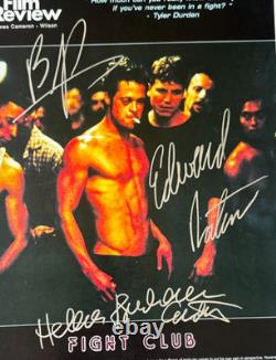 Elevate your collection with this rare and authentic piece of cinematic history! FIGHT CLUB Size: 11" x 17" Signed & Authenticated with a Certificate of Authenticity (COA). This stunning poster is personally autographed by the legendary cast members. Brad Pitt, Edward Norton, and Helena Bonham Carter. Includes a FREE Protective Sleeve.