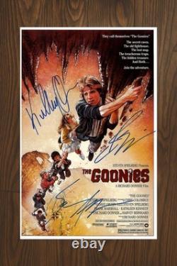 This stunning poster is personally autographed by the legendary cast members. Ke Huy Quan, Josh Brolin, and Sean Astin. Includes a FREE Protective Sleeve.